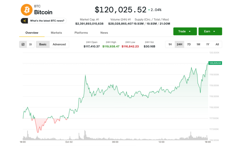 Bitcoin Broken above $ 120,000, a level that has not been seen since mid-August, as a position of entrepreneurs for a bullish October for risk properties.
