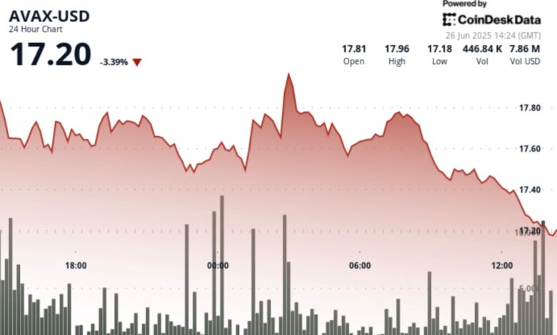 • AVAX dropped from $17.33 to a low of $17.02 (-1.79%) before staging a recovery to close at $17.25.