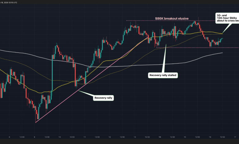 Since Sunday, a mark of $ 86,000 has appeared as a resistance and supply zone, as bulls failed to maintain gains above this level. Film collapse raised a declining reorganization in the main momentum indicators- simple moving averages 50, 100 and 200 hours (SMA). The three averages are one below the other and the south is heading alignment.