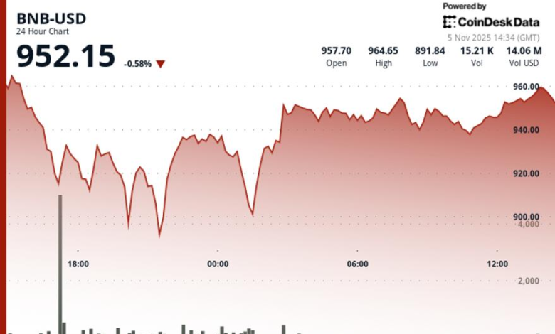 The BNB chain’s native token, BNB, is holding steady above $950 after falling 0.6% in 24 hours. The token last traded at $952, showing resilience in the face of broader market volatility; The Coindesk 20 (CD20) The index fell 1.6% in the same period.