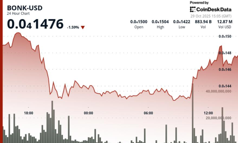 The decline was marked by a decisive break below the $0.0000146 support, a key level held for most of the previous week, confirming a short-term bearish structure, according to Coindesk Research’s technical analysis model.