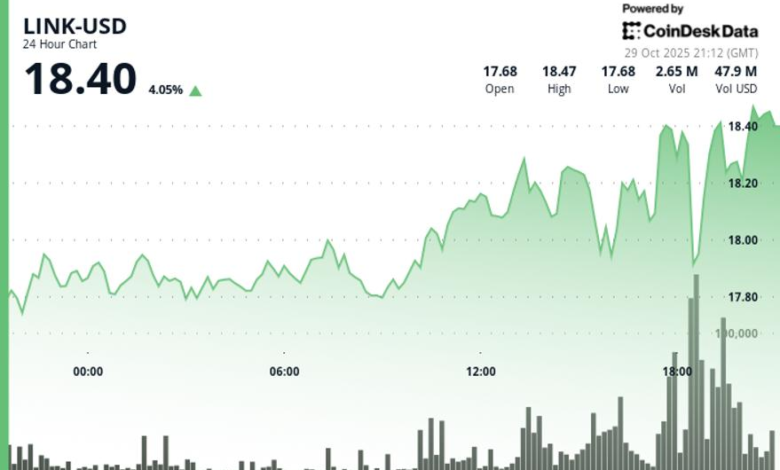 Chainlink’s native token link It recovered to $18.40 in Wednesday’s session, reversing losses from a sharp intraday selloff that saw the price fall below the key $18 support level.