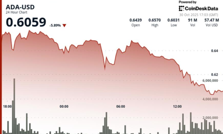 Cardano’s native token, ADA, has slipped more than 6% in the past 24 hours, falling from $0.642 to $0.605, as Large holders have been reported Sold $100 million worth of tokens.