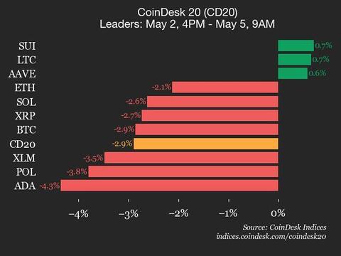 Leaders: SUI (+0.7%) and LTC (+0.7%).