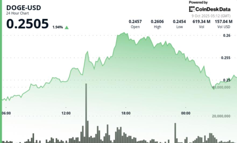 DOGE exchanged a 6% incidence between $ 0.24 and $ 0.26 to 24 hours until October 9. The token rallied at $ 0.26 in Japanese session but achieved strong institutional sale pressure. Whale addresses added more than 30m doge, strengthens longer positioning despite close weakness. Analysts highlighted similarities to previous history cycles where major resistance breaks locked exponential upside down, with a $ 0.41 flagged as a critical longer trigger.