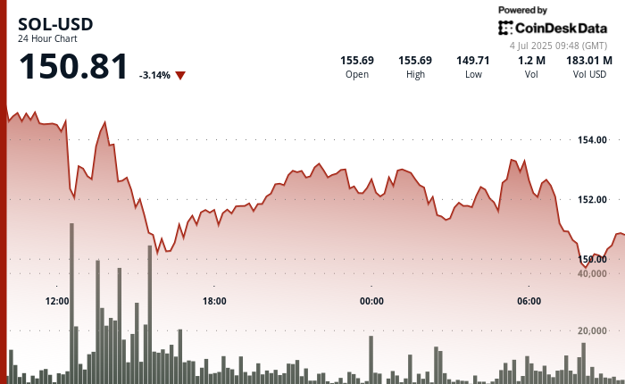 - A recovery phase began in the final 60 minutes, pushing Sol from $ 149.97 to $ 150.57, a 0.40% gain.