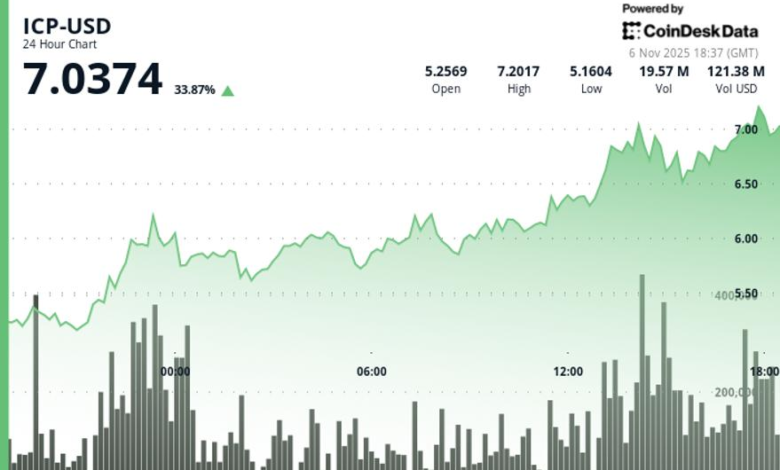Internet Computer (ICP) passed $7.00 with a 34% rally on massive volume