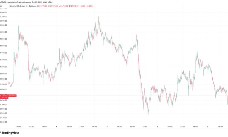 The top cryptocurrency fell to more than 1% $ 121,500, reversing Wednesday’s spike and penetrating the 200-hour simple transfer of average, CoinDesk data show. Other major tokens such as BNB and ETH have dropped more than 3%. CoinDesk 20 index fell 1% to 4,155 points.