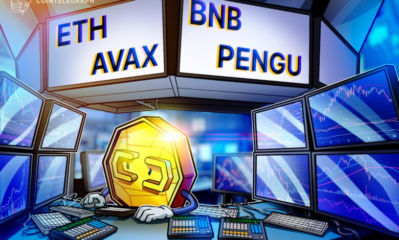 ETH, BNB, Avax, and Penguin are looking for a set for a possible reversed move.