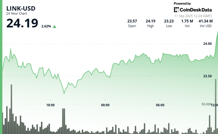 Chainlink original code link (connection) He crossed $ 24, submitting 2.5 % on Thursday, with Oracle provider unveiled a joint venture with Digift and UBS to automate the symbolic funds in Hong Kong.