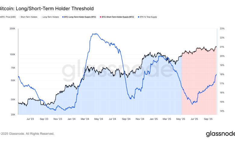 Short -term holders hold 18% of BTC supply, data suggests that euphoria is not close
