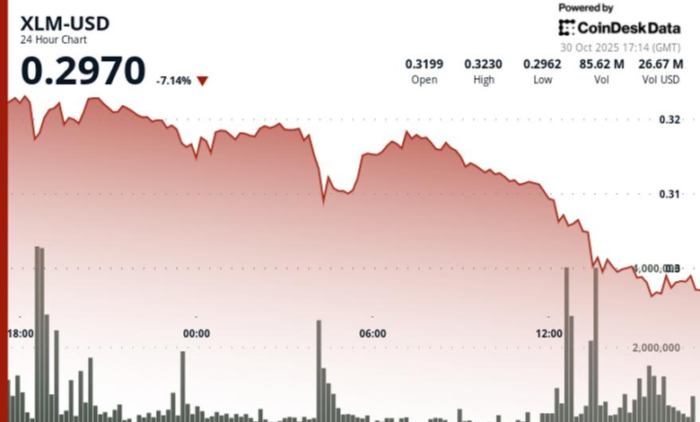 Stellar’s XLM rallied to $0.2975 on Tuesday but lagged the broader crypto market by 3.53%, highlighting weak relative strength.