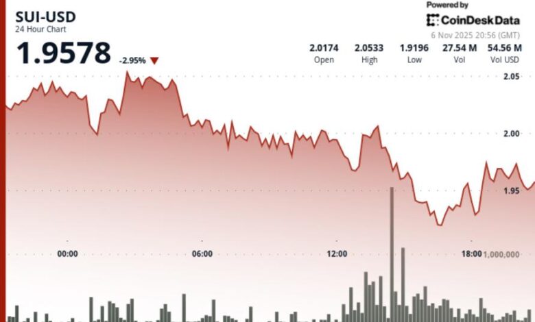Sui, the native token of the layer-1 blockchain sui, fell 2.5% to $1.98 on Thursday, slipping below the $2.00 level that acted as a key psychological and technical support.