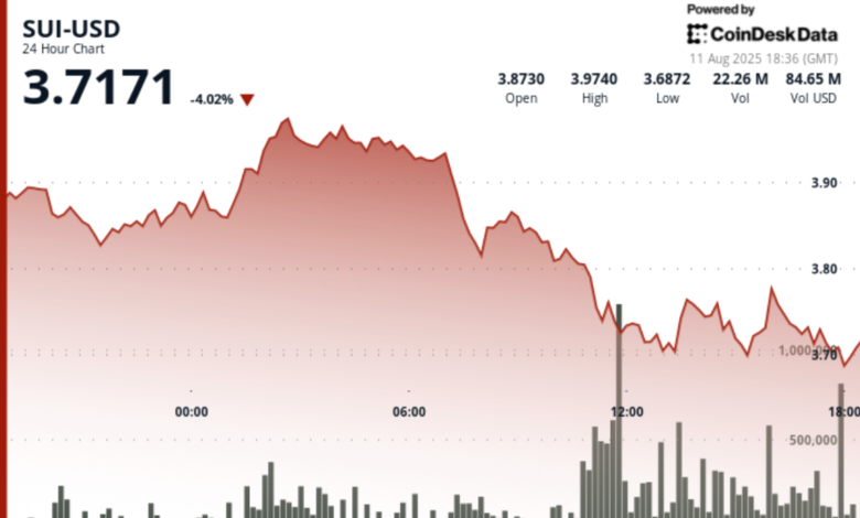 Sa’s (Sui) The price has dropped 4% over the past 24 hours after experiencing large market volatility overnight, CoinDesk Analytics data shows.