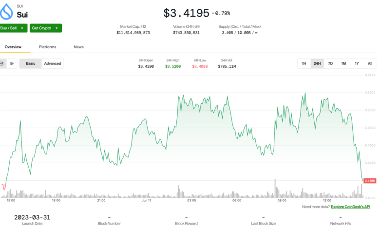 Sui appeared to respond to the development, showing strength overnight as it broke the resistance level of $ 3.49 with support from significant trading volume, according to the technical review model of Coindesk Research. More than 13 million tokens changed hands during the breakout, which at the same time Nasdaq’s filing.