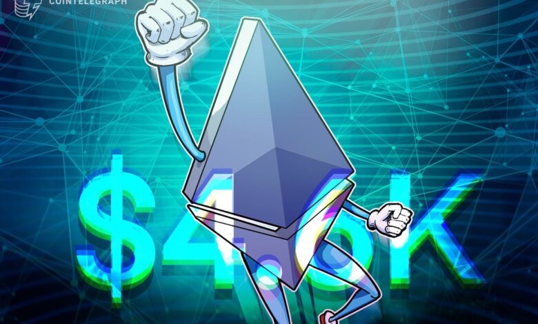 ETH prices rally from $ 4,200 in a few minutes, recover Cointelegraph Markets Pro and Tradingview.